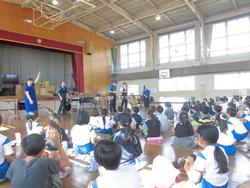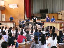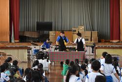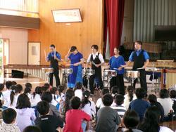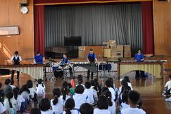 本日3・4校時に、打楽器の演奏グループの「ダックス」様が来校し、全校児童で音楽鑑賞会を行いました。マリンバ、スネアドラム、オーシャンドラム、ウィンドチャイムなど、様々な打楽器を演奏していただきました。サンバやジブリ曲メドレーなど、素晴らしい演奏を聴くことができました。メンバーの方と一緒に体を動かしたり声を出したり… 本物に触れた、芸術の秋を感じる時間でした。