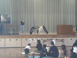 1年生は、家庭教育学級として、ダンス・ヨガのインストラクターの先生に来校していただき、親子ヨガ教室を行いました。手足や体を曲げ伸ばしたりひねったりしながら、様々な動きにチャレンジしました。ヨガを通して、親子でふれ合うことができました。