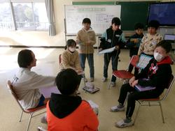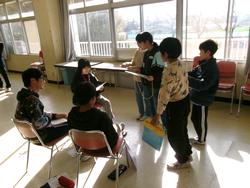 5・6年生は、合同で外国語の授業を行いました。6年生は「5年生にオリジナルサンドイッチについて伝えよう」、5年生は「6年生のオリジナルサンドイッチについて聞こう」というめあてで学習しました。6年生が伝えて5年生が聞いて評価するというスタイルで、5年生がたくさんのグループに移動しながら活動しました。最後のシェアリングタイムでは、良かった点や頑張って言えたことなどを伝え合いました。