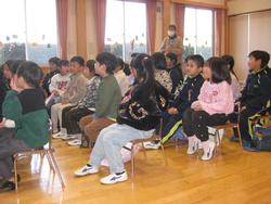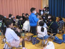 1年生はにじいろ幼稚園を訪問し、「ありがとうの会」に参加しました。年長児のみなさんが、クラスごとに絵本のストーリーをもとにした創作劇などを発表しました。1年生は、発表の様子を真剣に見ていました。最後に数名の児童が、会に参加した感想を発表しました。先月の「あきまつり」に続いて、にじいろ幼稚園との交流を深めることができました。