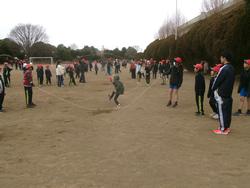 今日は飯沼タイムの時間に、全校児童で大縄跳び集会を行いました。体育委員会の児童のジャンプを見た後に、縦割り班ごとにチームジャンプと8の字跳びを練習しました。声をかけ合いながら、リズムを合わせて跳んでいました。