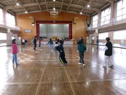 1年生の体育では、縄跳びの学習をしています。準備運動をした後に、前跳び、後ろ跳び、かけ足跳び、交差跳び、あや跳びの練習をしました。最後に2グループで大縄跳びの練習をしました。