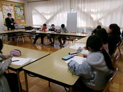 6年生の算数では、比例と反比例、およその面積の学習プリントを行った後に、数あてゲームをしました。相手の4桁の数字をあてるゲームで、位と数字があたった場合や数字のみあたった場合などを伝え合いながら、楽しく学習しました。