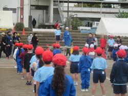 運動会の予行練習を行いました。肌寒い日となり、長袖の着用を認めての開始となりました。