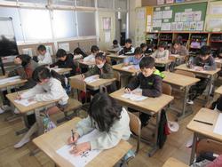 1年生と2年生の書き初め会が各教室で行われました。2学期末にそれぞれが考えた目標を、冬休み中に練習してきました。本番では、練習の成果を発揮して、位置文字位置文字心を込めて書きました。