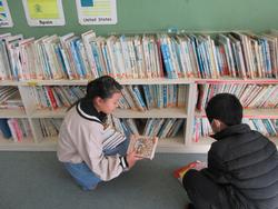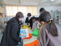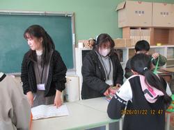 昼休みの様子です。読み聞かせ委員さんが来校して、さざなみ文庫の貸し出しを行ってくださいました。代表児童が自分たちのクラスのためにたくさん本を借りていました。外では、寒さに負けず元気に遊ぶ子どもたちの姿もありました。サッカーや鬼ごっこ、なわとびなど思い思いに遊んでいました。
