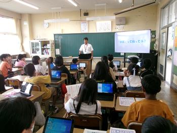 5年生は、茨城県防災・危機管理課の方をお招きして、マイタイムラインの作成の仕方を教えていただきました。