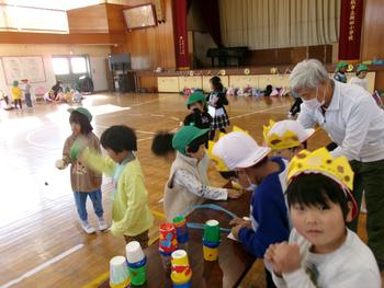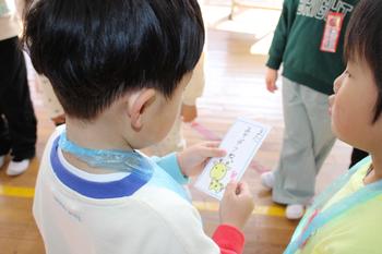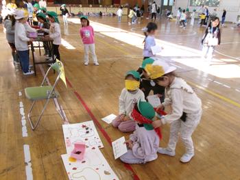 本日(11/19)の2~3時間目、1年生は、にじいろ幼稚園とさくら保育園の園児さんをお迎えして「なかよし会」を行いました。