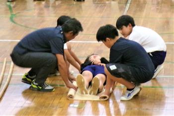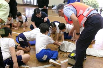 さらに、6年生による負傷者救助の実演があり、実際に災害が発生した際、小学生も重要な役割を果たすことができるということを感じている様子でした。