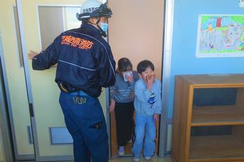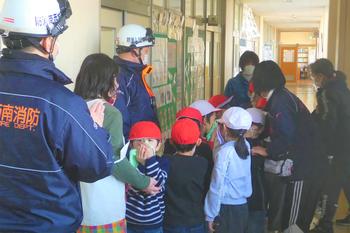 火災を想定した避難訓練を実施しました。当日は、より実践に近い訓練とするため、避難経路が変更となる状況を設定して行いました。担任はその状況を的確に把握し、慌てることなく避難経路を変更して、子供たちを安全に誘導することができました。