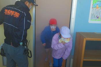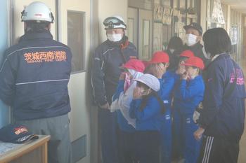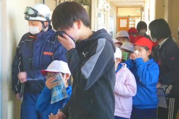 また、煙体験も実施しました。石下消防分署の方の指示に従って、煙が充満した部屋の中を低い姿勢で避難する訓練を行い、火災時の危険性や正しい避難行動について理解を深めることができました。