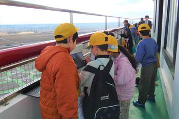 豊田城では、7階の展望室から地域の様子を観察し、地形や町の広がりについて理解を深めることができました。