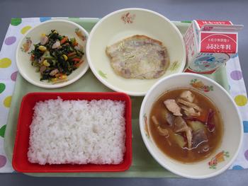 ~ 給食パクパク週間・茨城をたべようWeek ~ ~ 全校一斉いばらき美味しお給食 ~ 11月20日(木) ごはん 牛乳 豚肉のカレーマヨネーズ焼き 小松菜のソテー さつま汁 11月20日の給食は、茨城県内全校一斉茨城美味しお給食です。「美味しお給食」とは、おいしく減塩している給食です。 茨城県民は、生活習慣病といわれている病気になってしまう人が多い傾向があります。生活習慣病の予防の一つに減塩がありますが、茨城県民は全国平均より、食塩を多く摂取しています。そこで、茨城県では、毎月20日を「いばらき美味しおDay」と定めました。減塩というと味がうすくて物足りなく感じそうですが、工夫次第でおいしく食べることができます。 今回のメニューは、豚肉のカレーマヨネーズ焼き、小松菜のソテー、さつま汁です。常総市産や茨城県産の野菜をたっぷり使用し、食べやすい味付けに仕上げています。豚肉のカレーマヨネーズ焼きには、カレー粉にガラムマサラを足し、スパイスの風味でおいしく減塩することができるようにしました。今日の給食の食塩量は、小学校中学年1.8g、中学生2.2gです。どのメニューも残さず食べる児童が多く、おいしくいただきました。 |
