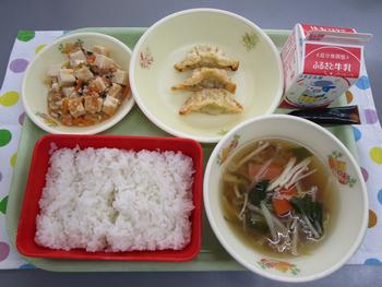~読書週間献立 10/27~11/9は読書週間!~ 『給食アンサンブル』からミルメーク/麻婆豆腐 11月4日(火) ごはん 牛乳(コーヒー牛乳のもと) 揚げ餃子(2.2.2.3) マーボー豆腐 もやしの中華スープ 常総市は、鬼怒川と小貝川の二つの大きな川に挟まれており、豊かな土地と豊富な水に恵まれています。この恵まれた環境が、おいしいお米を育てるのにピッタリです。 給食でみなさんが食べているごはんは、いつも常総市産のコシヒカリです。4~5月にかけて植えた稲が成長し、9月に収穫の時期を迎えます。11月から給食のお米が新米になりました。新米とは、その年に収穫されたお米のことです。新米は、水分が多くてやわらかく、つやつやしていて、ふっくらした炊きあがりが特徴です。さらに、お米本来の甘みや香りも楽しめます。給食のごはんをよく見てみてください。お米の一粒一粒がキラキラと光っていませんか?それは、お米農家の方々が手間ひまかけて育ててくれた証拠です。感謝の気持ちを込めて、味わって、なるべく残さず食べられるといいですね。 |
