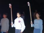 1日目に自然観察会、クラフト体験を行い、夜には大生小学校と合同でキャンプファイヤーをしました。