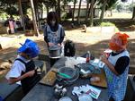 2日目の野外炊飯も合同で行い、各班ともに美味しいカレーライスを味わいました。午後は自然博物館へ移動し、自然観察を行いました。