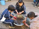 上級生が下級生に洗い方を教える場面もたくさん見られました。