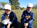 お昼休みには、縦割り班ごとに分かれて焼いもを食べました。