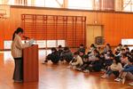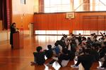 始業式では、4年生と6年生の代表児童が3学期や進級・進学に向けて頑張りたいことの作文発表を行いました。校長先生のお話では、『有言実行』―夢や目標をもち、声に出して、行動に移して、3月にはその夢が叶うように頑張りましょうというお話がありました。