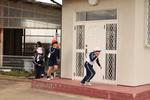 避難の合言葉「お・か・し・も」をしっかり守って、各教室からスムーズに避難することができました。
