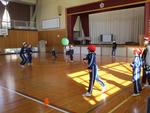 体育館では、ドッチボールで白熱した対戦になりました。