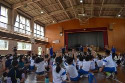 本日3・4校時に、打楽器の演奏グループの「ダックス」様が来校し、全校児童で音楽鑑賞会を行いました。マリンバ、スネアドラム、オーシャンドラム、ウィンドチャイムなど、様々な打楽器を演奏していただきました。サンバやジブリ曲メドレーなど、素晴らしい演奏を聴くことができました。メンバーの方と一緒に体を動かしたり声を出したり… 本物に触れた、芸術の秋を感じる時間でした。