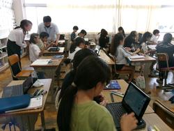 今日は、県西教育事務所の先生が来校し、授業を見ていただきました。タブレットを目的に合わせて有効に活用したり、グループで協力して実験に取り組んだりしていました。