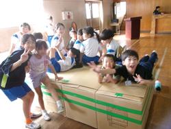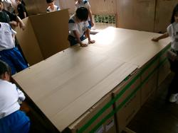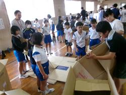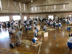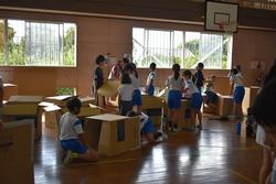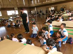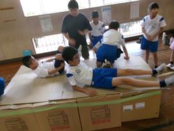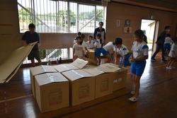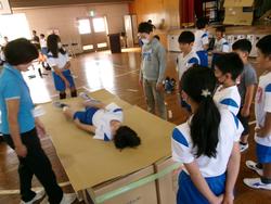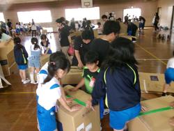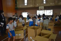 1・2校時に、全校防災学習として、災害時の避難所などで活用できる「ダンボールベッドづくり」を行いました。制作の前に、10年前の常総市の水害(関東東北豪雨)で被災した本校職員より当時のお話を聞き、普通に生活できることのありがたさを実感しました。ダンボールベッドづくりでは、6年生が中心となり縦割り班ごとに活動しました。ダンボールを箱型にし、8箱を組み合わせて一つのベッドにしました。実際にベッドに寝たりすわったりして、丈夫なベッドができ上がったことを体感しました。いざという時のために役立つ防災学習になりました。参加された保護者の皆様、ありがとうございました。