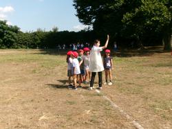 1年生の体育は、運動会の練習を行いました。今日は、徒競走の並び方を確認し、少しだけ走ってみました。自分の順番とコースを覚えて、素早く並ぶことができました。最後にダンスの練習を行いました。