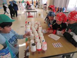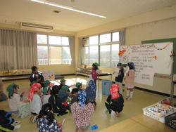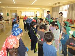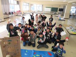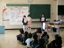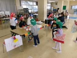 1年生は、保幼小連携の架け橋カリキュラムの一環として、にじいろ幼稚園の園児を招待して、「あきまつり」を行いました。1年生が事前に飾りつけやおもちゃなど丁寧に作り、さまざまなお店(迷路、どんぐりやまつぼっくりを使った秋の楽器やおもちゃ、魚釣り、ボーリング、的当てなど)を準備しました。園児が1年生のお店を回り、1年生は優しく声をかけていました。みんなで楽しく活動をして、交流を深めることができました。
