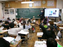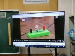 3年生の理科では、「電気を通すものと通さないもの」について学習しました。前の時間までに、輪ゴム、アルミニウムはく、コップ、空き缶などが電気を通すか通さないかを予想した後に実験をしました。今日は、動画を見ながら振り返りとまとめを行いました。