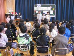 1年生はにじいろ幼稚園を訪問し、「ありがとうの会」に参加しました。年長児のみなさんが、クラスごとに絵本のストーリーをもとにした創作劇などを発表しました。1年生は、発表の様子を真剣に見ていました。最後に数名の児童が、会に参加した感想を発表しました。先月の「あきまつり」に続いて、にじいろ幼稚園との交流を深めることができました。