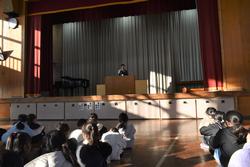 6年生の学級活動の時間に、学校長による「歌に込められた思いを考えてみよう」という授業が行われました。1曲の歌を聴き、歌詞を深く考えてみることによって、その歌が何を伝えたいのかを探っていきました。今日の授業で聴いた歌は、自分の在り方を見つめ、自分自身を大切にし、新たな可能性を探求しようというメッセージが込められている歌でした。