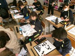 4年生の書写では、「明るい心」という文字の練習をしました。お手本や先生のアドバイスをもとに、止めやはらいに気を付けながら繰り返し練習をしました。