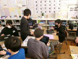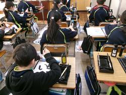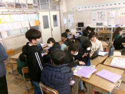 6年生の算数では、比例と反比例、およその面積の学習プリントを行った後に、数あてゲームをしました。相手の4桁の数字をあてるゲームで、位と数字があたった場合や数字のみあたった場合などを伝え合いながら、楽しく学習しました。