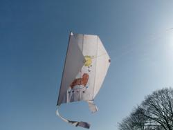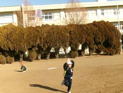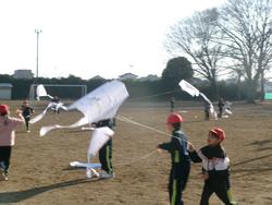 1年生の生活の授業では、「ふゆをあそぼう」の学習で、授業で作った凧をあげました。風の向きを考えたり糸が緩まないように調節したりしながら、安全に気をつけて凧あげをしました。