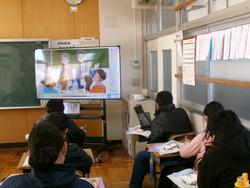 6年生の外国語では、中学校生活や将来の夢について、スライドや動画を見て聞き取る学習を行いました。学校行事や部活動などについて、聞き取ったことを学習シートに記入しました。