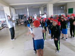 2年生の体育では、6年生を送る会で踊るダンスの練習をしました。映像や先生の動きを見ながら、音楽に合わせて振り付けを覚えていきました。手足をよく伸ばして、元気よくジャンプをしながら踊っていました。