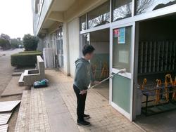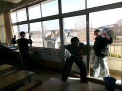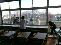6年生は、卒業を迎えるにあたって、6年間の思いを込めて学校内の清掃活動をしました。理科室や音楽室などの教室や昇降口の窓掃除を中心に行いました。
