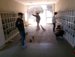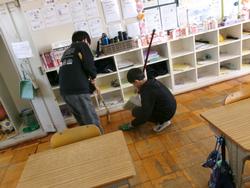 本日5校時に大掃除を行いました。机といすを廊下に運んだあとに、教室の掃き掃除やぞうきんがけをしたり窓ふきをしたりしました。最後にワックスがけをしました。みんなで協力して行い、すみずみまできれいになりました。