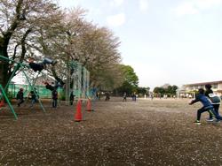 今年度は火曜日に飯沼タイム(12:45~13:20)を行う予定ですが、昨日はあいにくの雨だったので今日に延期になりました。風は冷たかったのですが、お昼ごろから気温が上がり、晴天となり、気持ちがいい時間となりました!鬼ごっこや上り棒、タイヤ跳びやブランコ、サッカーや草取りを手伝ってくれた児童もいました。桜の花びらが広がる校庭で思い思いの遊びを楽しんでいました!