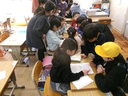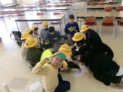 本日、年度末の通学班会議を行いました。通学班ごとに、安全な登下校ができたかどうかの振り返りや、来年度の通学班の確認をしました。さらに、いつもお世話になっている見守りボランティアの方々に、心を込めてメッセージを書きました。