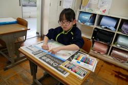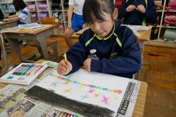 3年生の図工「かいて見つけるわたしのすきなもの」では、画用紙が色鮮やかなアイデアでいっぱいに!クレヨンの線を指やティッシュで「ゴシゴシ」とこすって優しくぼかしたり、色を塗り重ねた上を削って線を描く「スクラッチ」に挑戦したりと、技法の魔法を楽しみました。「色が混ざってきれい!」「削ると下の色が出てきた!」と、驚きと発見の声。自由に手を動かしながら、自分だけの「すき」を表現する姿は真剣そのものです。感性たっぷりに彩られた、世界に一つだけの素敵な作品が次々に誕生しています!