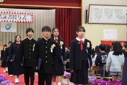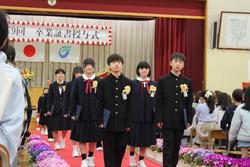 3月19日 石下小学校第79回卒業証書授与式が行われました。1年生から5年生の在校生も参加した全校児童での卒業式となりました。式の中の「別れの言葉」の中では、卒業生と在校生の全児童で歌う「校歌」そして卒業生による「旅立ちに日に」の合唱が盛り込まれていました。また、卒業生は在校生の「ふるさと」の歌声に合わせて退場をしました。今年度も6年生を送る会や卒業式に向けて全校合唱ができるように、1年間をかけて取り組んできました。会場には卒業生・在校生のそれぞれの気持ちが伝わる歌声が広がり感動の卒業式になりました。