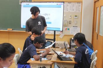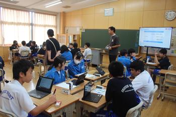 9月16日(火)の3時間目、キャリア教育の一環として、株式会社ケシオンの3名の方を講師にお招きし、出前授業を行いました。SDGsラジオを聞き、様々な会社の取り組みや、仕事内容について調べ、自分が将来何をしたいかについて考えました。