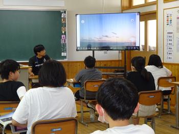 まず、朝の太陽と半月の様子と、夕方の太陽と半月の様子について、写真から気づいたことを話し合いました。