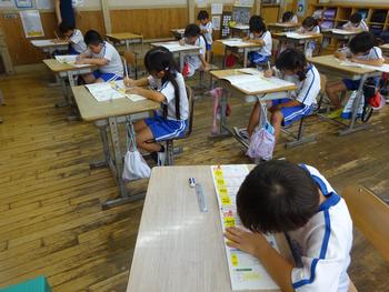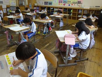今までに習った漢字と似ているところや筆順の確認をみんなでしてから、丁寧に漢字練習をしました。
