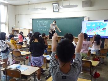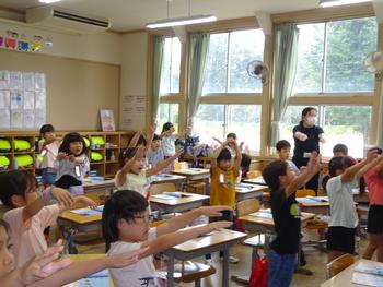 「どれみにあわせてからだをうごかそう」をめあてに、「どれみのうた」に合わせて体を動かしていました。