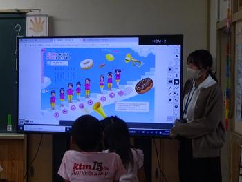 1の1、音楽「どれみとなかよし」の授業の様子です。