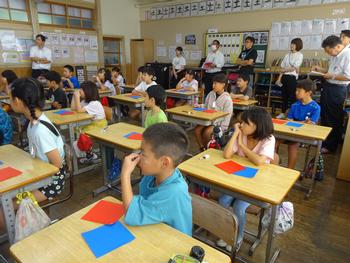 「地震」や「水害」などの災害について学んだ後、防災ゲーム「クロスロード」を行いました。